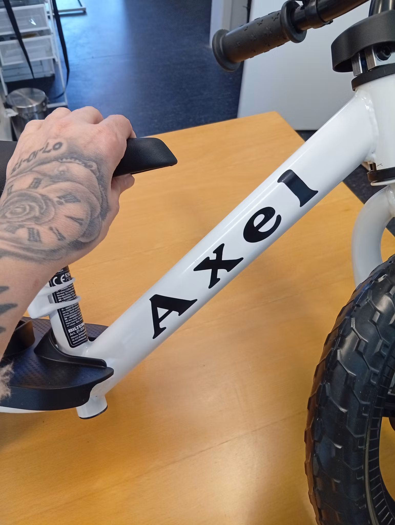 Ny spar cykelVarianter i vit och rosaFrån 18 månad +Med egen namn eller logo på Också moligt att har din egen cykel och vi bytt ut klistermarke för att gör
